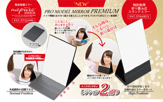 ナピュア®プロモデル 角度調整3段付きメタリックバージョン折立ミラー(M・L)
